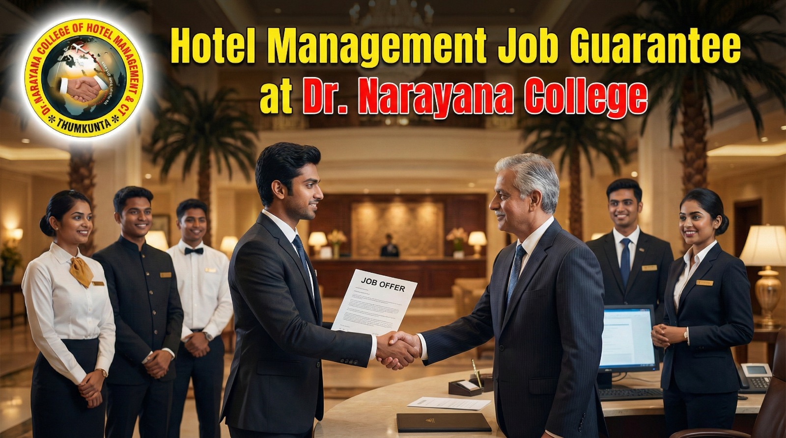 Hotel Management Job Guarantee is no longer just a dream — it’s a legal promise at Dr. Narayana Degree College of Hotel Management, Hyderabad. This bold move gives parents and students something rare in education: written assurance of job placement after completing the course.
